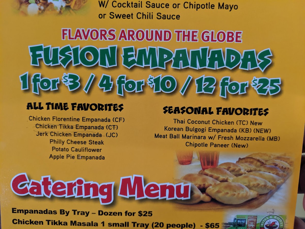 Empanadas are the star here, featuring delightful options like Chicken Tikka and Potato Cauliflower, praised for their generous fillings and authentic taste. Customers rave about the freshness and quality, with one reviewer noting the consistently hot, flavorful treats that make waiting in line worthwhile.